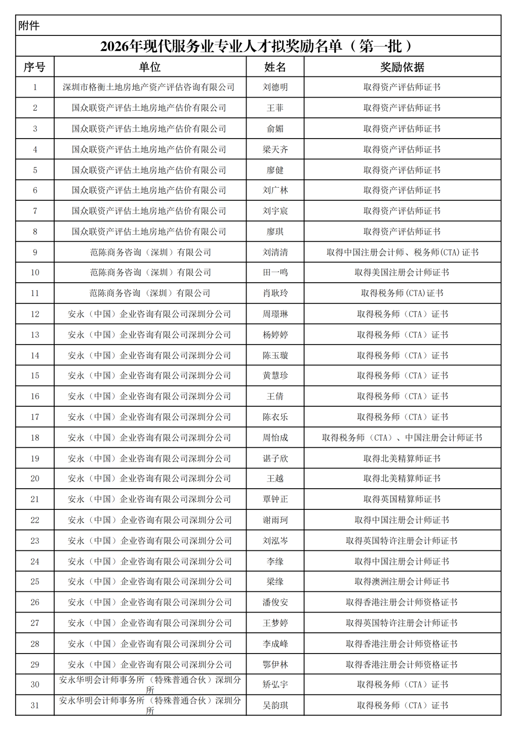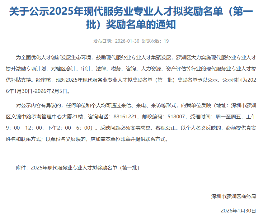 公示!罗湖区2025年现代服务业专业人才拟奖励名单(第一批)