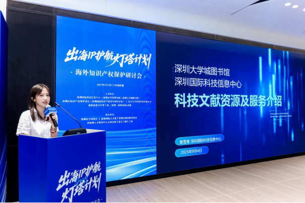 “出海IP护航灯塔计划”凝聚政策与资源深度赋能出海企业。政策方面,深圳前海自贸合作区将深化跨境知识产权保护制度创新,探索建立与国际接轨的纠纷调解机制;资源方面,深圳国际科技信息中心为深圳市提供强大科技信息支撑,门户网站(https://itic-sci.com)已开放9大全球顶尖数据库,包括ScienceDirect、ClinicalKey、incoPat、Springer、Nature、Wiley Online Library、CAS SciFinder Discovery Platform、中国知网系列数据库、中华医学期刊全文数据库,由深圳市科技图书馆(深圳大学城图书馆)承建的深圳国际科技信息中心科技文献中心代表黄雪慧女士深入介绍了中心提供的论文、专利、专家三类文献资源及科技信息支持服务,确保企业出海创新“对标国际、精准导航”。