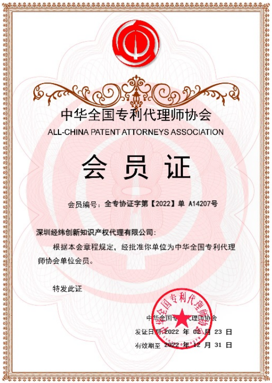 中华全国专利代理师协会会员证